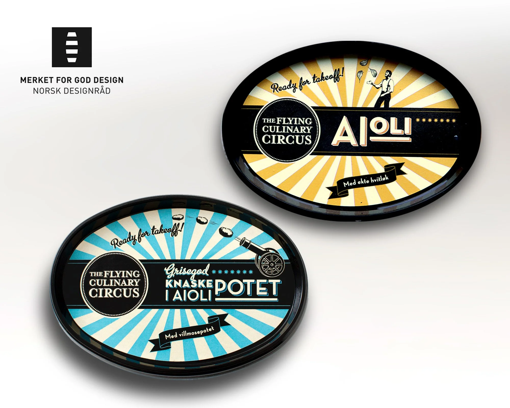 Denne serien med dagligvareprodukter for The Flying Culinary Circus fikk Merket for god design. Design av Forest, prosjekt i samarbeid med Accendo.